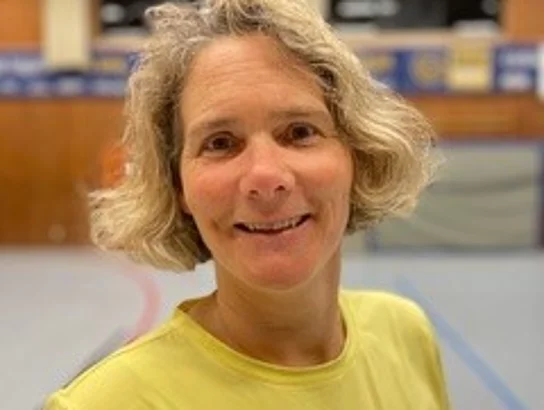 Geleitet wird die Stunde von Anja Bischof (Übungsleiterin C - Fitness und Gesundheit und Behindertensport, Übungsleiterin B - Sport in der Prävention und Sport für Ältere)