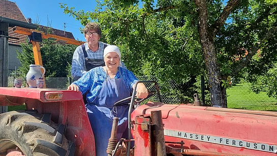 Hiltrud Stoll und Franz Auber mit ihrem neuen Programm "Ächde Älbler" durch´s Ländle: Ächde Älbler leabet gaaanz näh am Hemml! Für Hillus Herzdropfa gilt die einfache Formel von Thaddäus Troll: „Schwabe ist, wer schwäbisch spricht“. Unser Schwobaländle ist keines der Bundesländer, das von Politikern festgelegt wurde, vielmehr ist es ein „Kulturraum“, ein Gebiet, in dem Menschen eine gemeinsame Kultur teilen: *Dazu gehört die schwäbische Sparsamkeit: S‘ Salz von dr Brezel reiba, dass dr Bsuach koin Durscht griagt! *Und natürlich Spätzla: Kässchbätzla, Krautschbätzla, Leisa mit Schbätzla, Kartofflschbätzla, Schbätzla mit Sooooß... *Maultaschen sind Pflicht auf jedem schwäbischen Menüplan: Mauldascha gschmelzt, Mauldascha endr Briah, Mauldascha mit Oi... Mauldascha VEGAN (oine grausts vor garnix) *Dazu ein Gläschen Most: "Ein guter Most heilt jeden Schmerz, er ist des Schwaben Perle. Der Wein erfreut des Menschen Herz, d’r Moscht da ganza Kerle!" (Quelle unbekannt) Was sonst noch zu einem ächden Älbler gehört, erfahren Sie in diesem Programm! Hillus Herzdropfa (selber waschächde Älbler) wissen alles über diese Highländer ond was sonscht no auf dr Alb romschbrengt! Dialekt schwätza ist bei ihnen Ehrensache! Ein kleiner Auszug aus ihrem Albschwaben Dialekt: Zirengga? Schdriggjäggle? Aurawai? Soidawieschd?