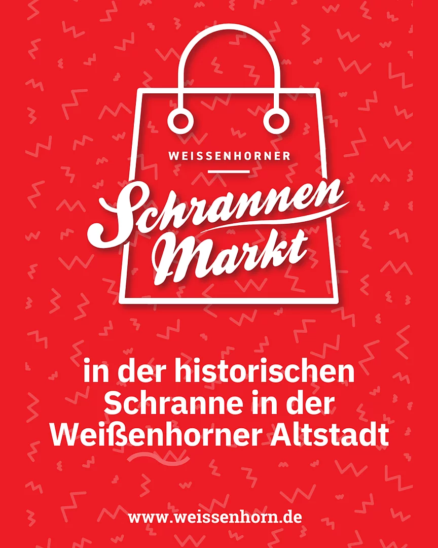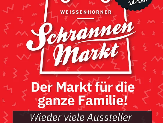 Der monatliche Markt in der historischen Schranne. Bis zu 12 Aussteller präsentieren sich mit ihren Angeboten und Waren. Geschenkideen und Kunsthandwerk, Leckeres und ausgefallenes - da ist für jeden Geschmack etwas dabei! Seit mehr als 2 Jahren zieht einmal im Monat der Schrannenmarkt in historischer Umgebung viele Besucher in die Weißenhorner Altstadt. Der Markt öffnet seine Türen um 14 Uhr und geht bis 18 Uhr. Nach dem Besuch in der Schranne bietet sich noch ein Besuch auf dem Donnerstags-Wochenmarkt an. Nur eine knappe Minute zu Fuß bieten die Aussteller auf dem Hauptplatz eine Vielzahl an leckeren, gesunden, regionalen Lebensmitteln.